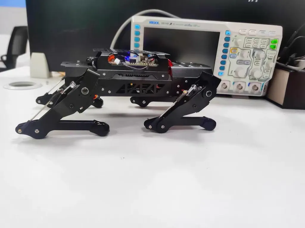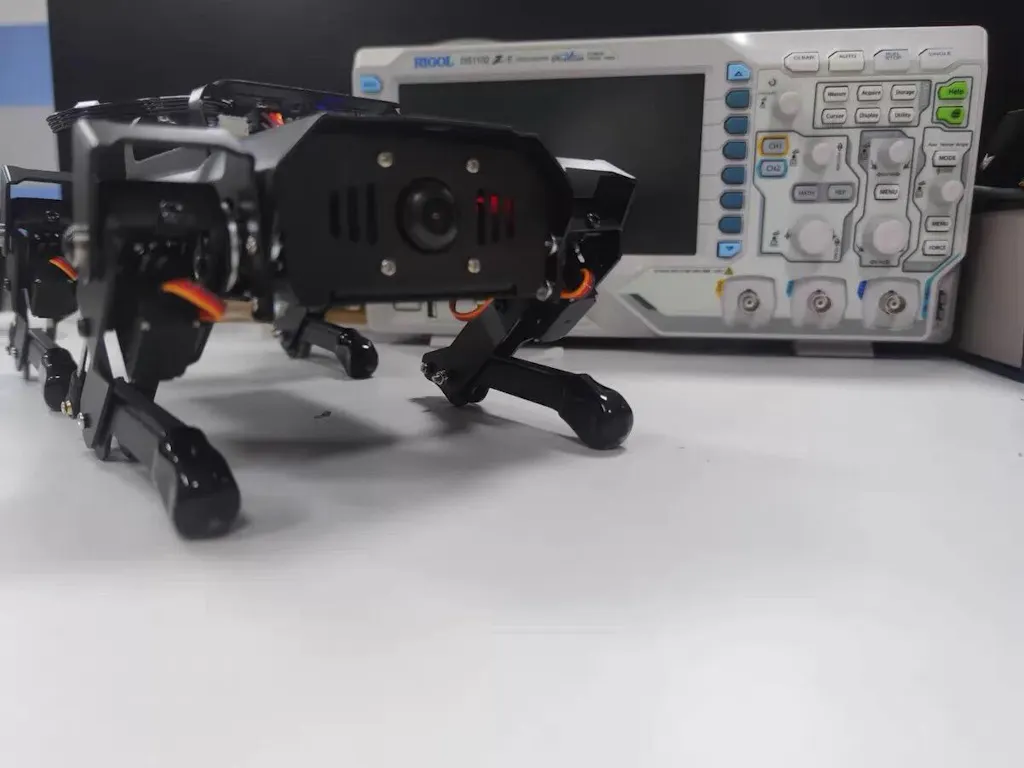 【High-Torque Smart Servos & Inverse Kinematics】 PuppyPi is equipped with 8 high-torque stainless steel gear servos, offering faster response times and stable output. The robot's legs use a link structure design combined with inverse kinematics algorithms to enable coordinated multi-joint movement and precise motion control.
